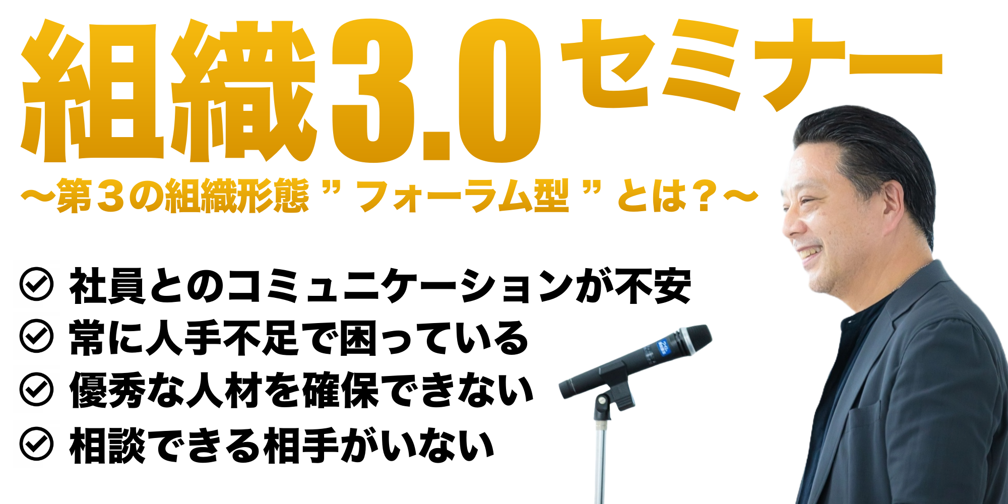 今回開催する目的は、もっとたくさんの経営者がフォーラム型という新しい組織形態を知り、自分自身を変えるきっかけを持つ、ということです。